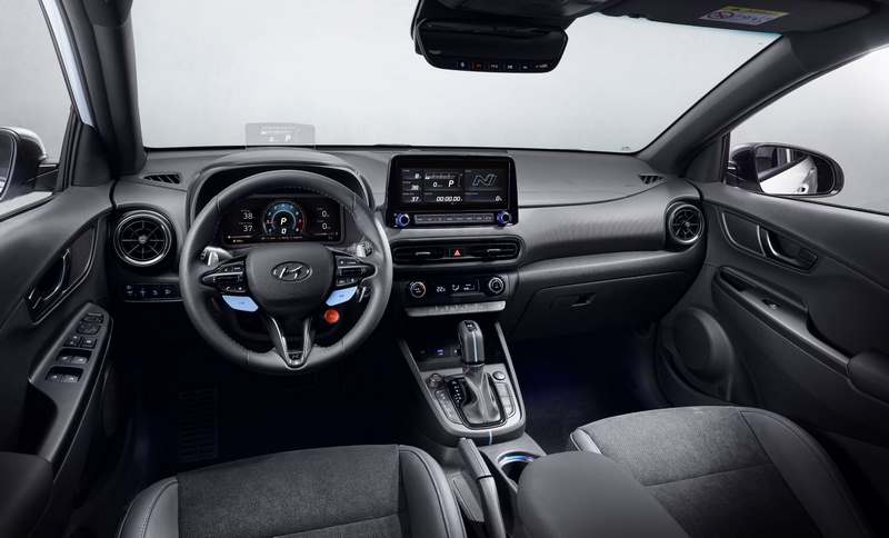 KONA N, dışındaki ve motorundaki yüksek performansı, iç mekanındaki detaylarla da devam ettiriyor. Güncel kardeşleriyle benzer bir atmosfere sahip olan kabinde N logosu birden fazla yerde karşımıza çıkıyor. Birçok Hyundai modelinde karşımıza çıkan 10,25 inç bilgi-eğlence ve dijital gösterge sisteminde N modu bulunuyor.